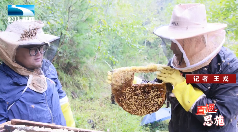 恩施州咸丰县清坪镇官敞坝村村民 吴原霆:“山很大,蜜蜂采花的品种不止100种,我们就在万紫千红当中得了这一味,它是甜而不腻。”