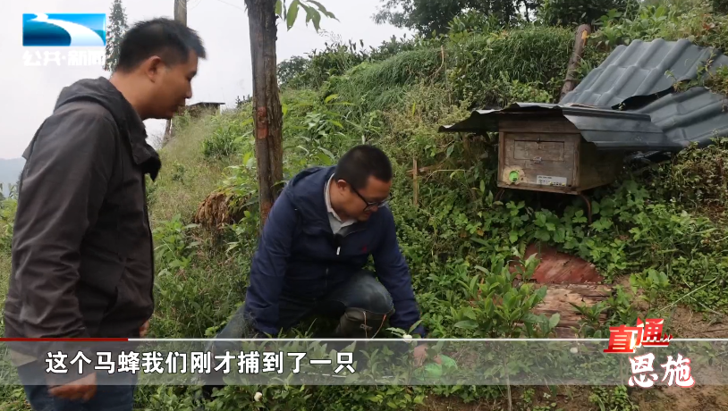 恩施州咸丰县清坪镇官敞坝村村民 雷杨:“这个马蜂我们刚才捕到了一只,在这个季节,马蜂的出现会阻碍蜜蜂去采蜜,我们为了保护生态环境没有对它用药。”