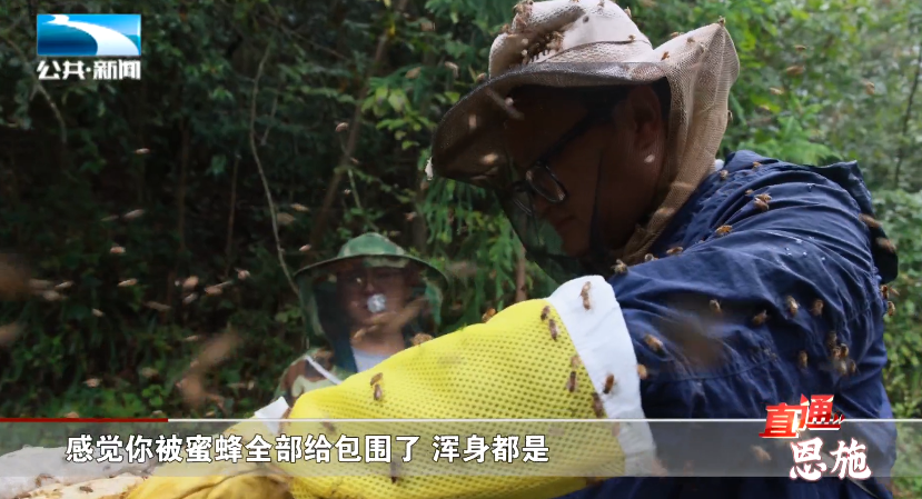 恩施州咸丰县清坪镇官敞坝村村民 吴原霆:“不能打它,打不得,只要有一只追你很多的蜜蜂就会来了,你不能打,你这个也是,这个直接可以吃。”