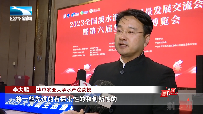 华中农业大学水产院教授 李大鹏:“将一些先进的、有探索性的和创新性的一些养殖技术、养殖的模式、新品种,包括三产融合的这些新的思路和方法都融入到整个荆州的渔业高质量发展中去。”