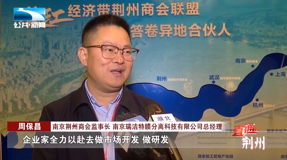 南京荆州商会监事长、南京瑞洁特膜分离科技有限公司总经理 周保昌:“总部在南京,我们在西安有办事处,我们第二个办事处应该会设在荆州,正在筹备,我们会在荆州各大高校,去引进一些优秀的学生到南京去工作,工作一两年以后,时机成熟,这些人才我希望能够回到荆州,成立自己的分公司。”