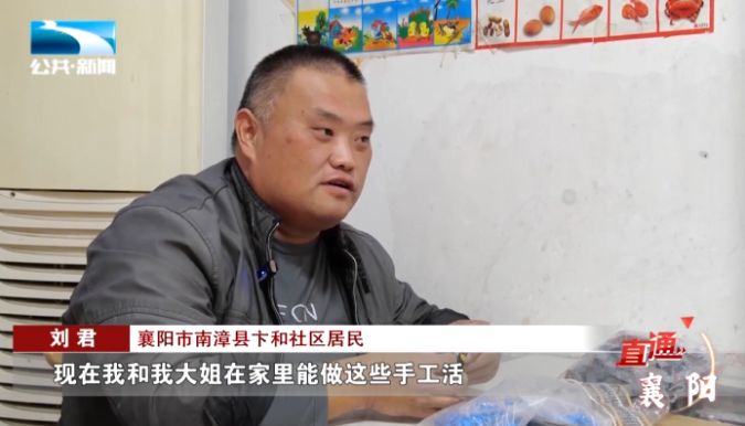 襄阳市南漳县卞和社区居民 刘君:“现在我和我大姐在家里能做这些手工活,而且每天工资也有一百多块钱,我就觉得非常好。”