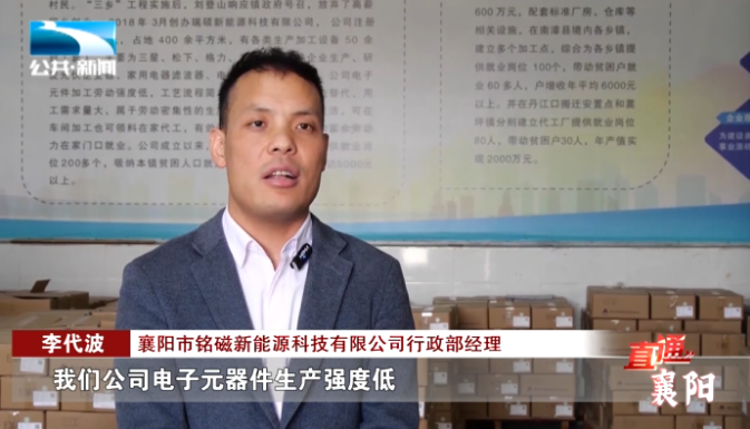 襄阳市铭磁新能源科技有限公司行政部经理 李代波:“我们公司电子元器件生产强度低、工艺流程简单、手工环节机械无法替代,且用工需求量大。过去我们在各个乡镇及周边县市设立多个加工点,运输和管理成本比较大。现在我们和卞和社区合作,既解决了用工难的问题,同时降低了我们的管理和运输成本。”