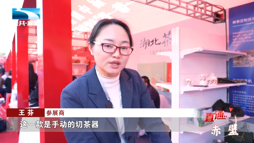 参展商 王芬:“这一款是手动的切茶器,适用于整块青砖茶的切割,把砖茶直接分离了,变成一小段一小段的,比较小巧,适合于旅行、家用。”