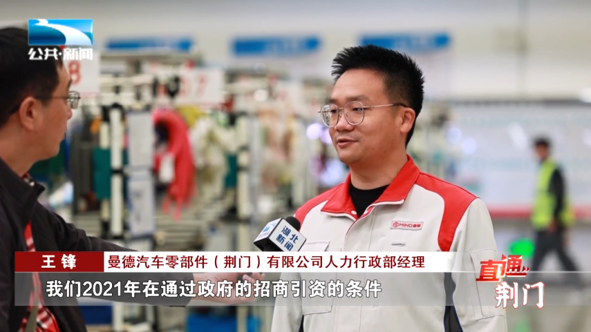 曼德汽车零部件(荆门)有限公司人力行政部经理 王锋:“我们2021年在通过政府的招商引资的条件,然后落户到荆门,目前我们曼德生产的产品有汽车线束、汽车车灯、空调以及脚踏板等产品,这些产品也全部实现量产,我们预计在2023年的保守估计年收入在10亿以上。”