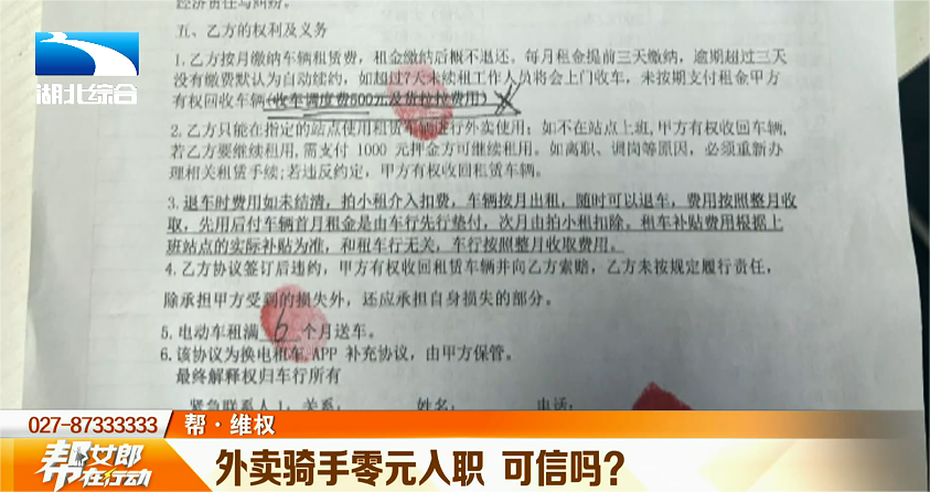 帮女郎在对方提供的一份协议上看到,“车辆按月出租,先用后付,车辆首月租金由车行先行垫付”,并不是王先生所认为的免费。王先生认为当时对方以“零元入职”的招聘宣传误导他签下了合同,希望能挽回损失。
