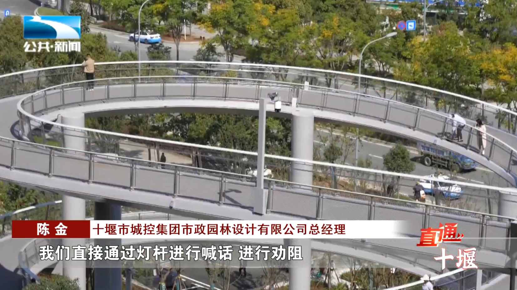 十堰市城控集团市政园林设计有限公司总经理 陈金:“比如说有一个游客在上边抽烟了,我们通过监控室可以精确地定位到他,我们直接通过灯杆进行喊话,进行劝阻,另外每一个灯杆实际上就是一个WiFi热点,我们游客在步道上可以随时随地连接无线WiFi。”