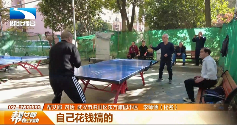 武汉东方雅园小区是一个有着近万户居民的密集型小区,两三万人却没有足够的活动场所。五年前,小区一期的一些居民在小区里自筹自建了一个简陋的乒乓球场。但在11月17号,小区物业通知要将乒乓球场拆除。看到拆除通知,爱好乒乓球的居民们表示不能接受。