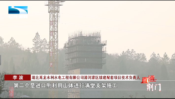 湖北禹龙水利水电工程有限公司漳河灌区续建配套项目技术负责人 李波:“在汛期期间,河水陡升陡降,主要是利用山体进行(转体),一方面满足了防汛要求,第二个是进口侧利用山体进行满堂支架施工,可以减少施工难度,包括减少高空作业的危险。”