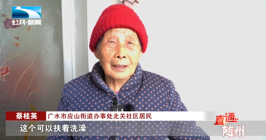 广水市应山街道办事处北关社区居民 蔡桂英:“这个可以扶着洗澡,扶手撑着就起来了,是民政局配的,配齐了就很方便 ,一个人就可以生活。”