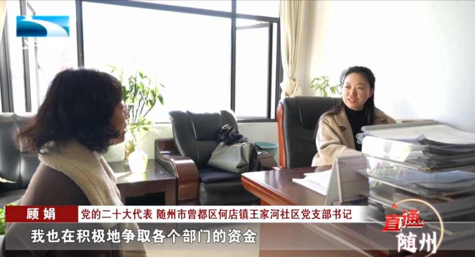 党的二十大代表、随州市曾都区何店镇王家河社区党支部书记 顾娟:“这段时间,我也在积极地争取各个部门的资金,我们想尽快地把这块的场地修整好。”