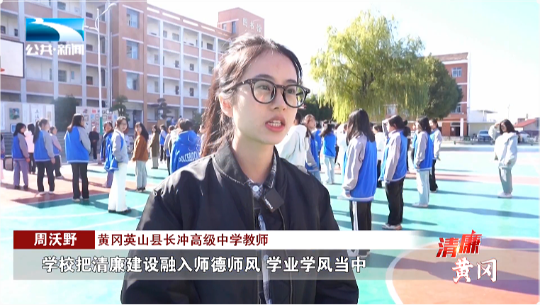 黄冈英山县长冲高级中学教师、党总支书记 周皓:“积极营造学生崇尚廉洁、老师廉洁从教、党员干部廉洁奉公的浓郁氛围,持续推进清廉长高的创建工作。”