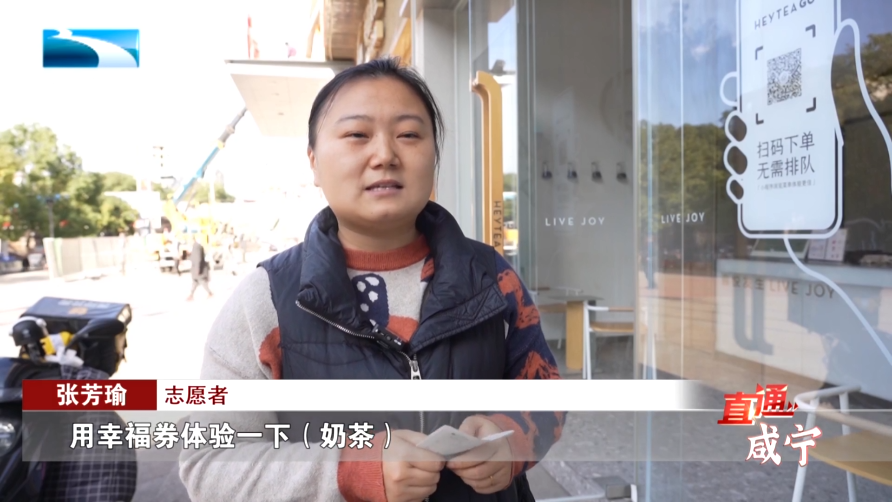 志愿者 张芳瑜:“用幸福券体验一下(奶茶),享受了95折,便宜了一块钱,我觉得挺好的,把实惠带给我们志愿者,让我们更有动力去参加这些志愿服务活动。”