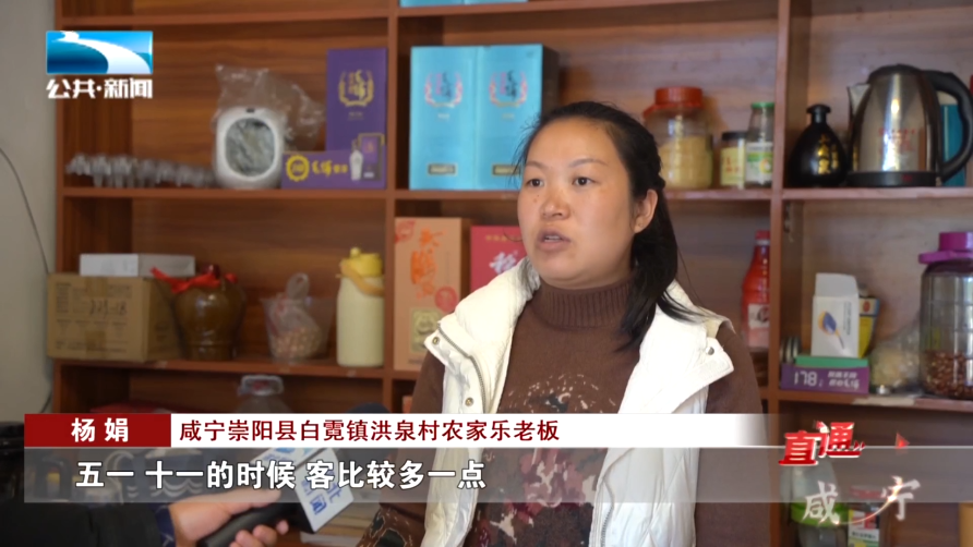 咸宁崇阳县白霓镇洪泉村农家乐老板 杨娟:“旺季的时候,五一、十一的时候客比较多一点,一天能有个十来桌,一年的收入也有个十来万元。”