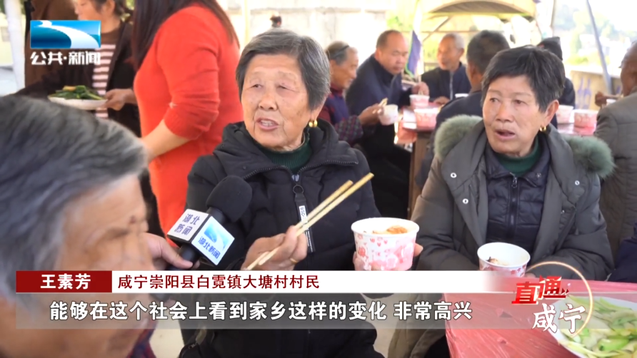 咸宁崇阳县白霓镇大塘村村民 王素芳:“菜味道很好,又符合老人吃,煮得很烂,活到七八十岁,能够在这个社会上看到家乡这样的变化,非常高兴。”