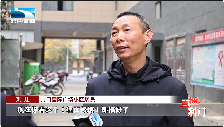 荆门国际广场小区居民 刘珏:“现在你看这个(墙面修缮)都搞好了,给我们住户做了一件大好事。”