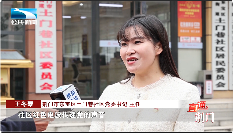 荆门市东宝区土门巷社区党委书记、主任 王冬琴:“运用主题党日,社区红色电波传递党的声音,深入群众开展巡回宣讲,把理论学习、党员教育、服务群众结合起来,融入敲门行动,以网格为单位,与居民群众面对面宣讲,打通理论宣讲最后一公里。”