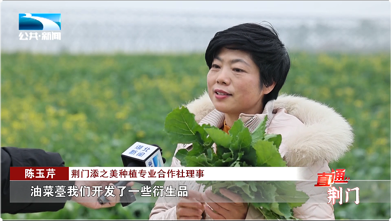荆门添之美种植专业合作社理事 陈玉芹:“油菜薹我们开发了一些衍生品,比如说我们油菜酥饼、油菜饺子、粗粮包,给大众餐桌上提供一道美味佳肴。”