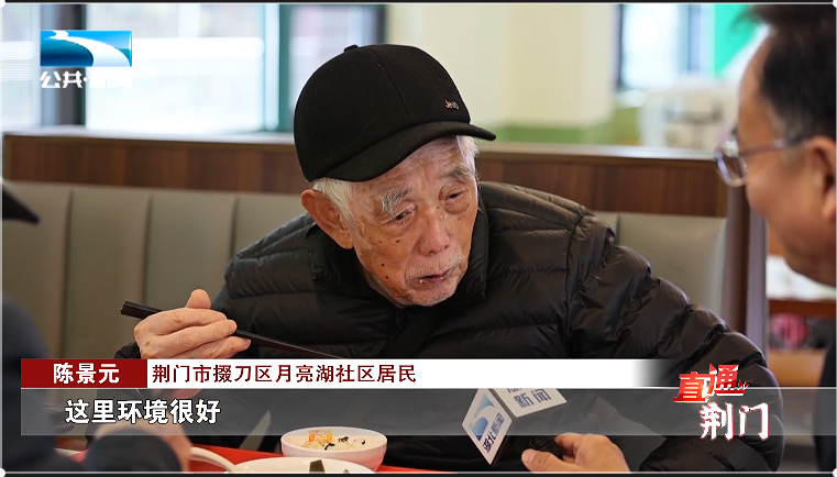 荆门市掇刀区月亮湖社区居民 陈景元:“这里环境很好,这里饭菜很合我的口味,比在家里(吃饭)方便多了。”