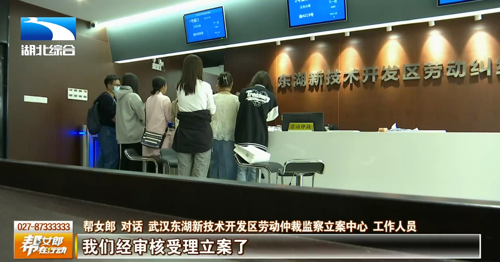 随后,帮女郎带着大伙来到了武汉东湖新技术开发区劳动仲裁监察立案中心反应相关情况。武汉东湖新技术开发区劳动仲裁监察立案中心工作人员表示,此前已有十多名中盈传媒科技湖北有限公司的员工前来申请过劳动仲裁。“案件涉及人数不少,如果在我们这里交件了,我们经审核受理立案了,我们会依法向双方当事人送达受理开庭通知书以及应诉开庭通知书。如果没有受理的话会有书面的回执给到大家。”