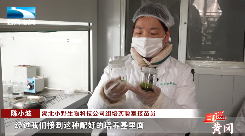 湖北小野生物科技公司组培实验室接苗员 陈小波:“我现在是在接苗,里面有几百株种苗,然后经过我们接到这种配好的培养基里面,一颗可以转上几十瓶,经过一两个月,它就会变成了几千株。”