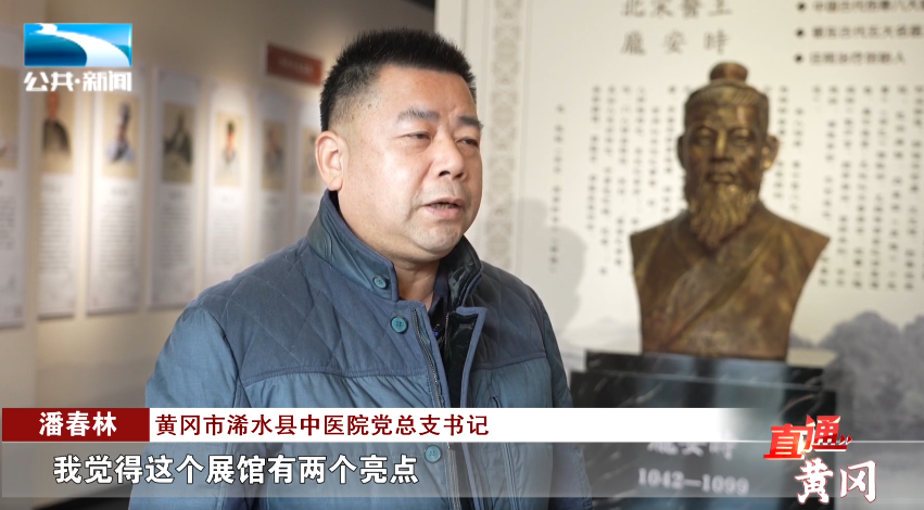 黄冈市浠水县中医院党总支书记 潘春林:“我觉得这个展馆有两个亮点,一个是充分展示了庞安时的生平、成长经历、行医故事、精湛的医术和高尚的医德,让人们更加走近庞安时,全面了解庞安时,第二个亮点是全面展示了苏东坡与庞安时的友谊,还原了庞安时与苏东坡一起畅游清泉寺的场景,让人们在展馆不自觉地想起苏东坡的‘谁道人生无再少 门前流水尚能西’的名句。”