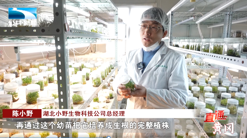 湖北小野生物科技公司总经理 陈小野:“首先是选成熟质量好的塑果,将它通过生物手段来消毒,通过配置培养基将塑果的种在培养基里面进行萌发,萌发之后这是第一步,它形成了一个小的圆球径,第二步就是再换装一个培养基,它就长成幼苗,再通过这个幼苗把它培养成生根的完整植株,再到大棚里面进行驯化。”
