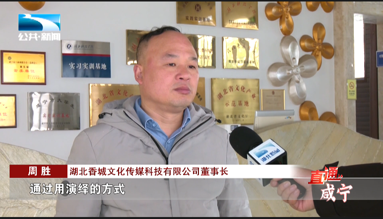 湖北香城文化传媒科技有限公司董事长 周胜:“下一步我想走出去学习,我们和湖北科技学院,包括我们的地方政府联合出一些具有代表性的文化剧目,把这些剧目走出咸宁,让更多人了解咸宁,让更多人爱上咸宁。”