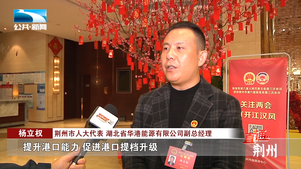 荆州市人大代表、湖北省华港能源有限公司副总经理 杨立权:“江陵正在打造新能源、新材料基地,大力发展多式联运,提升港口能力,促进港口提档升级,完善港口的集疏运设施,壮大临港主导产业,聚焦‘两新产业’不断壮大产业规模。”