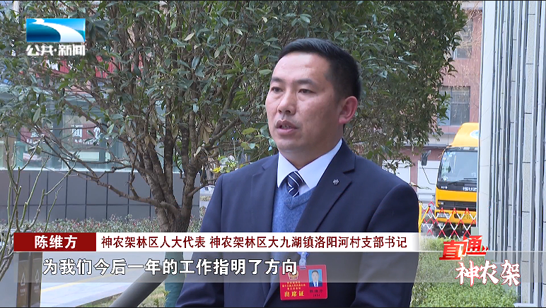 神农架林区人大代表 神农架林区大九湖镇洛阳河村支部书记 陈维方:“为我们今后一年的工作指明了方向,今年我们将紧紧围绕《规划》和政府工作报告来,开展自然生态环境的保护和人民群众增收等方面的工作。”