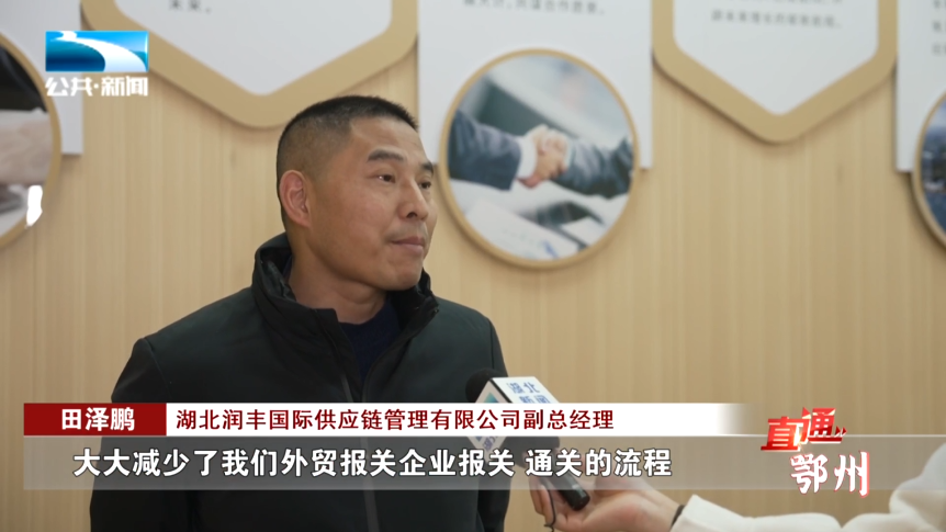 湖北润丰国际供应链管理有限公司副总经理 田泽鹏:“大大减少了我们外贸报关企业报关、通关的流程,我们可以及时了解国际贸易的市场动态、价格行情以及货物动态,我们整个企业在市场运营的效率有了大大提高。”