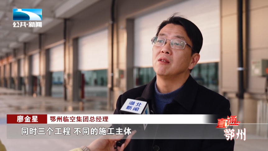 鄂州临空集团总经理 廖金星:“同时三个工程,不同的施工主体,都在一个有限的范围内同时施工,我们组织了专班在这边协调,举了全市之力来保证这个项目的按时推进。”