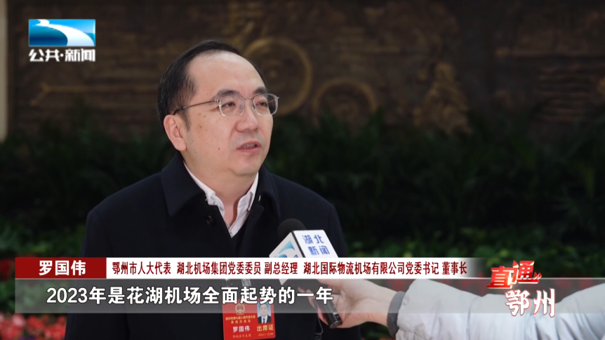 鄂州市人大代表、湖北机场集团党委委员、副总经理、湖北国际物流机场有限公司党委书记、董事长 罗国伟:“2023年是花湖机场全面起势的一年,机场容量获批33架次,夜间起降的航班数量跃居全国第二,在开放(口岸)方面我们从无到有,实现了水果、冰鲜、水生动物口岸的批复,为机场实现打造一流的航空货运枢纽奠定了坚实的基础。”