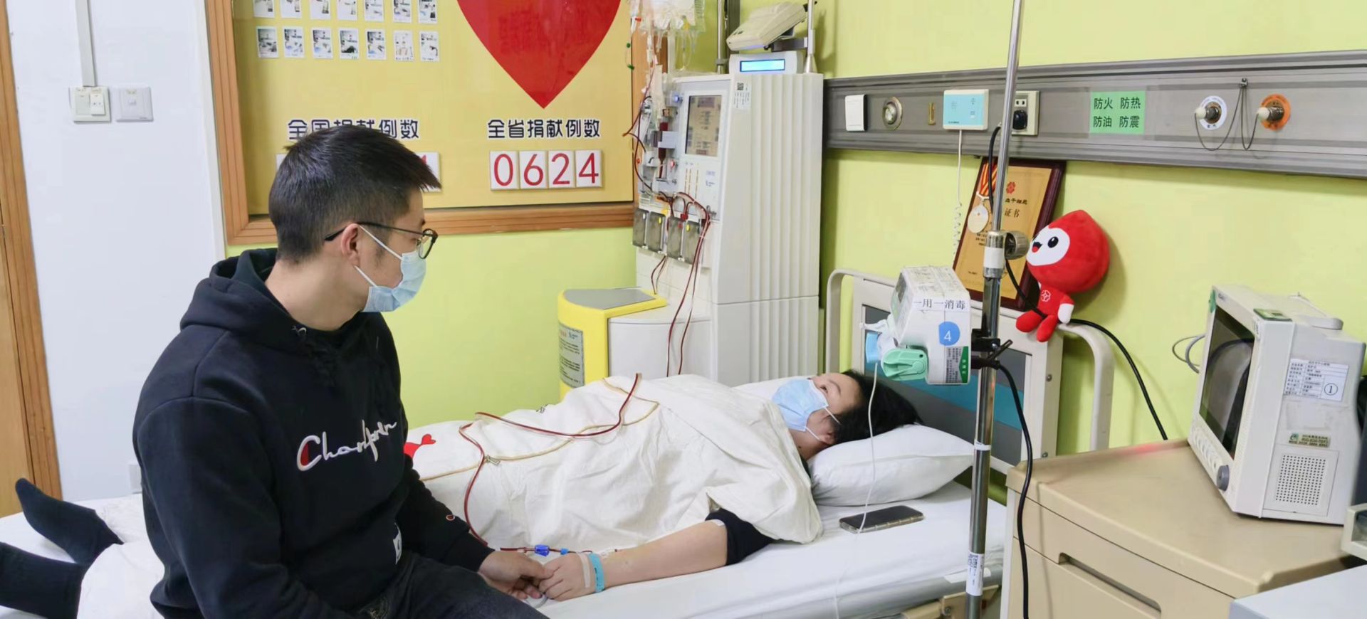 1月22日,来自恩施的志愿者李倩(化名)在武汉捐献造血干细胞,一位血液病患儿将因此获得新生。为支持妻子,前来陪护的丈夫王燕(化名)也现场采集血样,加入中华骨髓库,夫妻俩用实际行动为这个寒冬带来浓浓暖意。