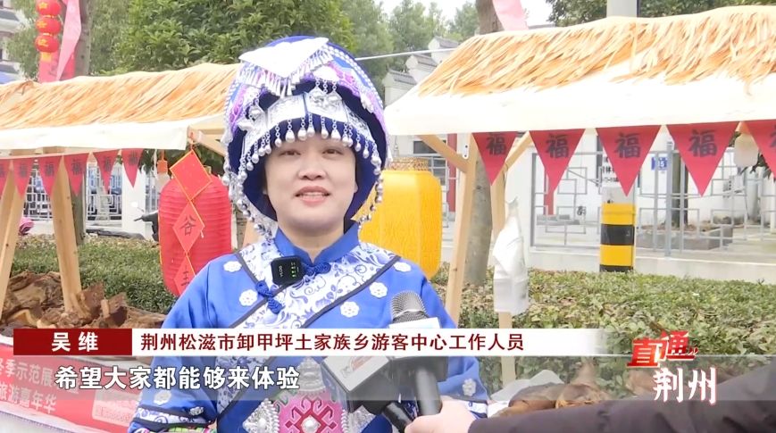 荆州松滋市卸甲坪土家族乡游客中心工作人员 吴维:“这边有很特色的腊蹄子、腊肉、腊排骨,还有我们这边很出名的摔碗酒,希望大家都能够来体验。”