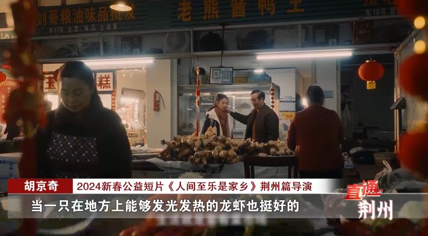 《人间至乐是家乡》荆州篇导演 胡京奇:“在采风时候有一个东西特别打动我,最早的时候我们都是渴望自己成龙的,但好多年以后我们发现我们没有成龙,我们还是个龙虾,所以当我们回到湖北回到荆州,我们觉得也许回家乡,当一只在地方上能够发光发热的龙虾也挺好的。”