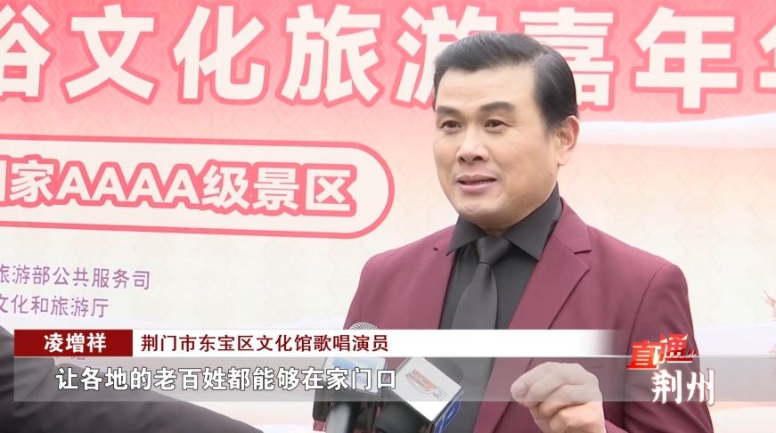 荆门市东宝区文化馆歌唱演员 凌增祥:“让各地的老百姓都能够在家门口,享受到不一样的文化大餐,让老百姓能够集中起来,然后也是对各地的经济、农产品,和他们的特色产品也是个宣传的作用。”