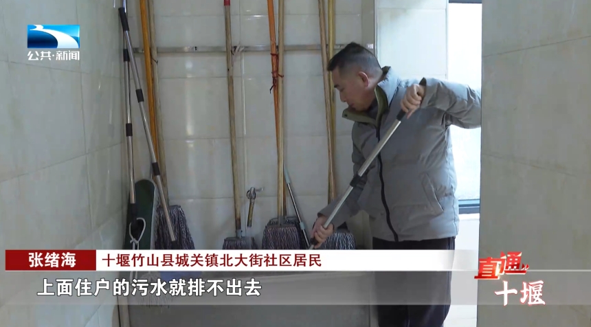 十堰竹山县城关镇北大街社区居民 张绪海:“因为我们上面是居民楼,上面住户的污水就排不出去,所以有时候冒起来的粪水、脏水,特别地臭。”