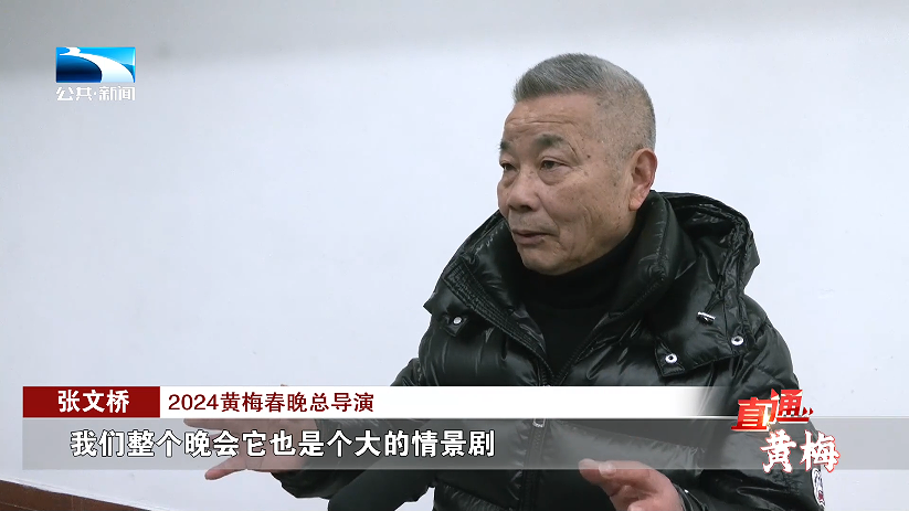 2024黄梅春晚总导演 张文桥:“我们整个晚会它也是个大的情景剧,故事主要围绕在小南街和小南街的人而发生的,小南街有局限,小南街的人他就辐射到全县的各个方面,把黄梅县的经济建设、文化等等,整体地把它表达一番。”