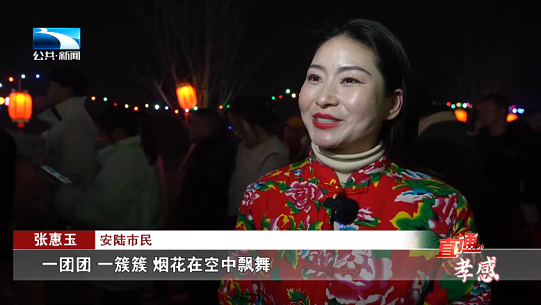 安陆市民 张惠玉:“一团团、一簇簇烟花在空中飘舞,展示着‘李白故里 诗画安陆’,日新月异的繁荣活力,勾勒出绚丽多彩的美好前景,也寄托着大家对甲辰龙年的祝福和期待。”