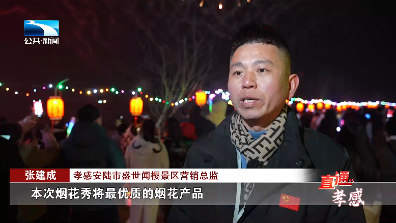 孝感安陆市盛世闻樱景区营销总监 张建成:“本次烟花秀将最优质的烟花产品,结合最新的科技手段,打造了一场兼具传统韵味和创新元素的烟花盛宴,从策划、设计到实施,每一个细节都力求完美。”