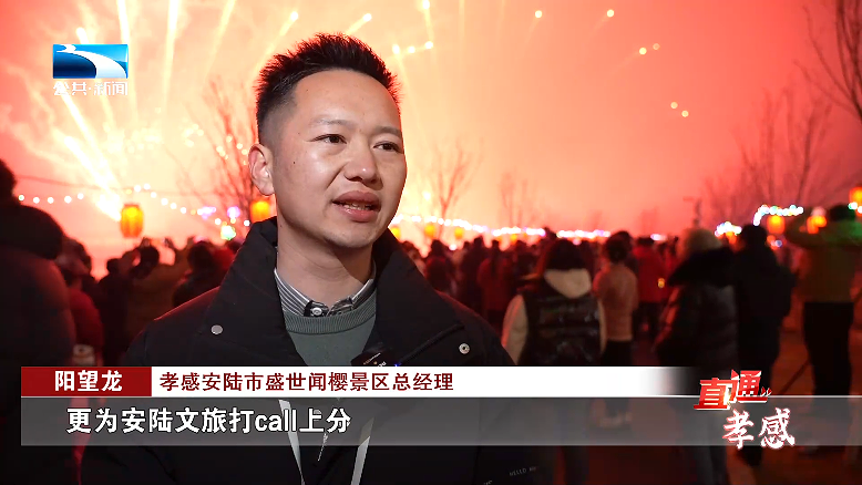孝感安陆市盛世闻樱景区总经理 阳望龙:“以绚烂的色彩、精湛的工艺和震撼人心的效果,在安陆的夜空绽放无与伦比的华彩,上演精彩绝伦的‘花火之舞’。不仅展示了烟花作为中国传统文化的独特魅力,更为安陆文旅打call上分。”