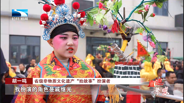 省级非物质文化遗产“抬故事”扮演者 胡一鸣:“我扮演的角色是戚继光,他是一个民族英雄,能够参加这次活动,我感受到了中华传统文化的博大深远、渊远流长。”