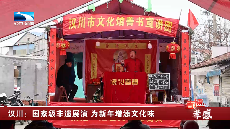 非遗过大年,地道汉川味。汉川悠久的历史和深厚的文化积淀,孕育了许多独具风格特色的优秀非物质文化遗产。其中,国家级非物质文化遗产“汉川善书”横扫汉川各地,浓浓的年味飘荡在川城大地。