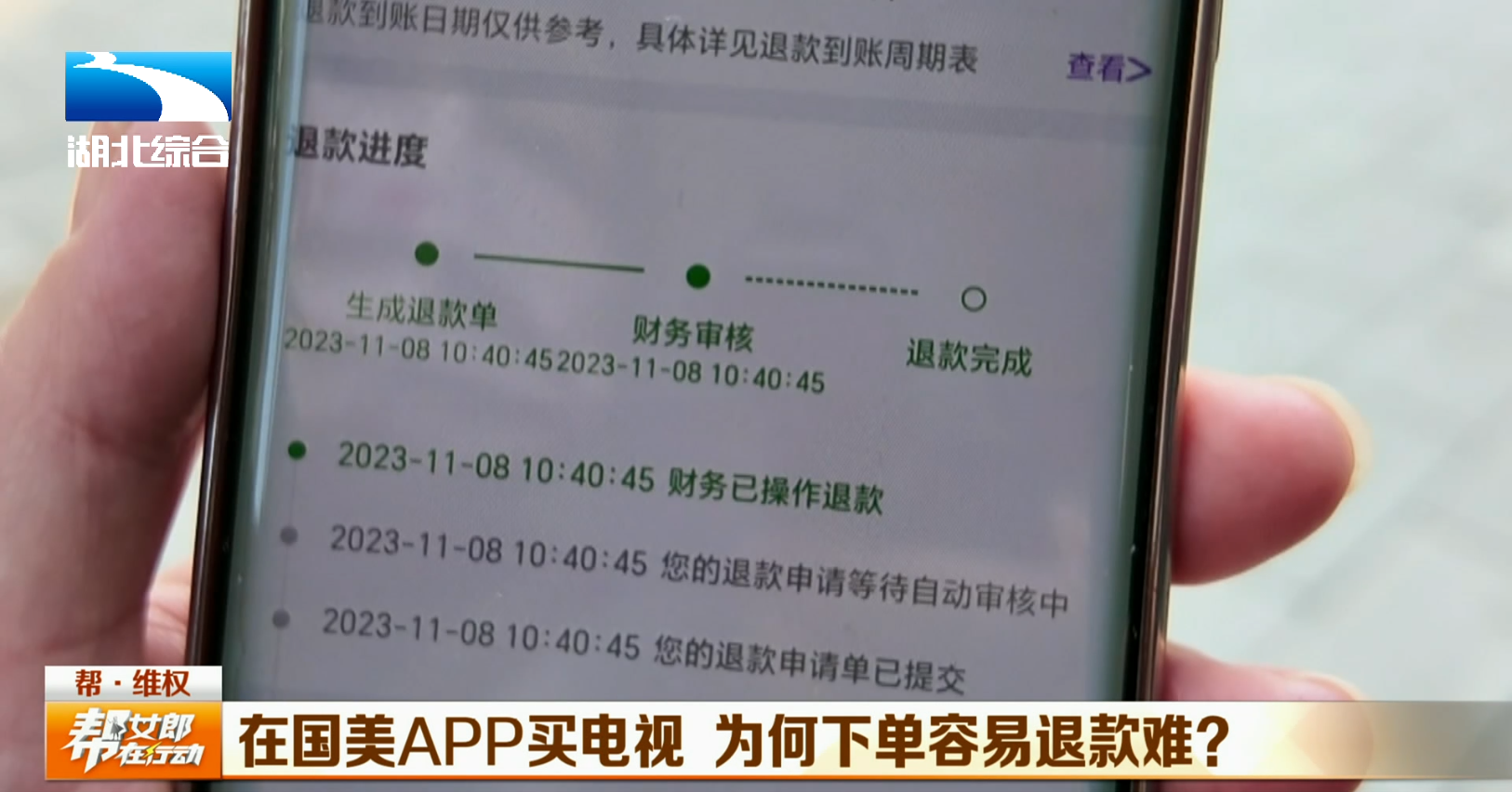 去年双十一期间,武汉的刘大姐在国美电器APP上购买了一台电视,结果到现在电视都没收到,钱也退不了,这是怎么回事?