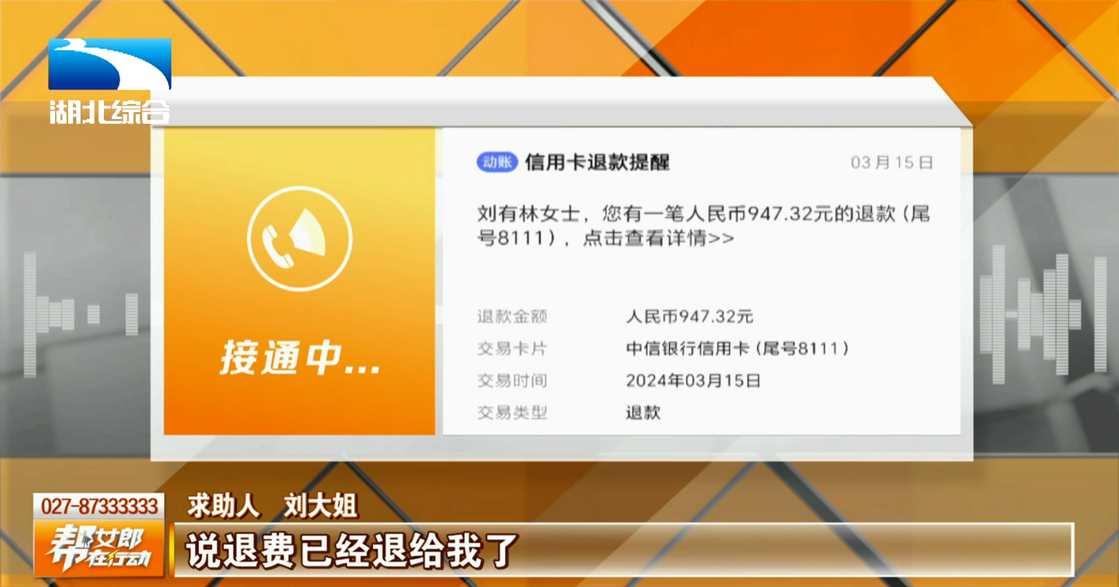 就在帮女郎投诉后的第二天,刘大姐告诉帮女郎一个好消息,退款到账了!