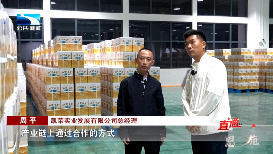 凯荣实业发展有限公司总经理 周平:“产业链上通过合作的方式,我们这个工厂就集中精力来做好茶叶包装,单盯着一个事做,它的细节、过程管理会更精细。”