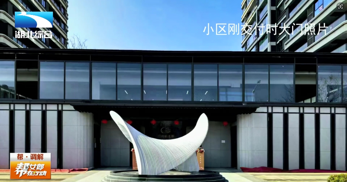 童先生是武汉市经开区中设众安双屿大观小区的业主,今年5月,即将入住新房的童先生发现,小区的大门口有些“诡异”。“突然间出现一个怪现象,把这门口变成了灵堂,放一些悲哀的音乐,严重影响我们居民的生活。”