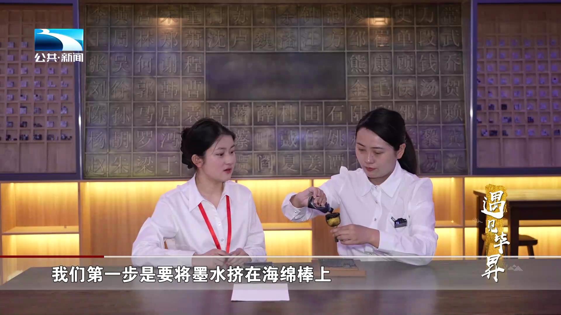 “大概三颗豌豆那么多的量就可以了。第二步我们将墨水,均匀地涂抹在每一个字块上面;第三步将我们准备好的宣纸,固定在我们的排版上面。”
