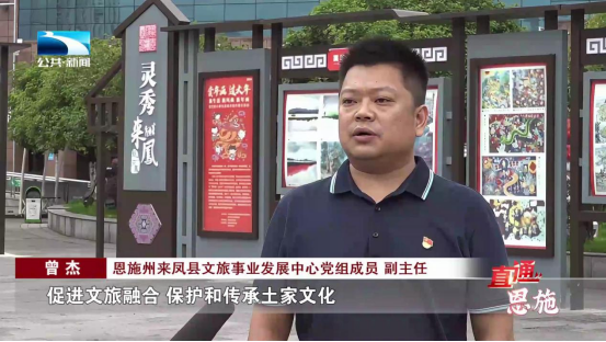 恩施州来凤县文旅事业发展中心党组成员、副主任 曾杰:“以文彰旅,强化‘土家第一县’品牌,促进文旅融合,保护和传承土家文化,通过各种活动和措施加强对土家文化的保护和传承,让更多的人了解和认识土家文化,推动土家文化的发展和创新。”